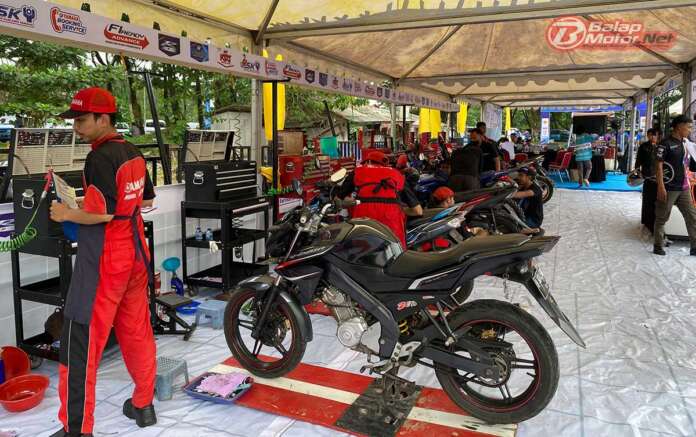 “Jadi kita menyiapkan sebanyak 10 teknisi untuk menangangi motor umum dan 2 teknisis khusus untuk menangangi motor WR,” terang Firmansyah.