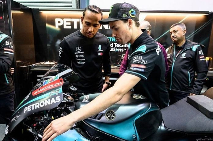 Franco Morbidelli yang merupakan pembalap dari tim Petronas Yamaha SRT memberikan arahan tentang cara memacu motor Yamaha YZR-M1. Menariknya, ini merupakan pertama kalinya bagi Lewis Hamilton akan menunggangi kudabesi MotoGP.