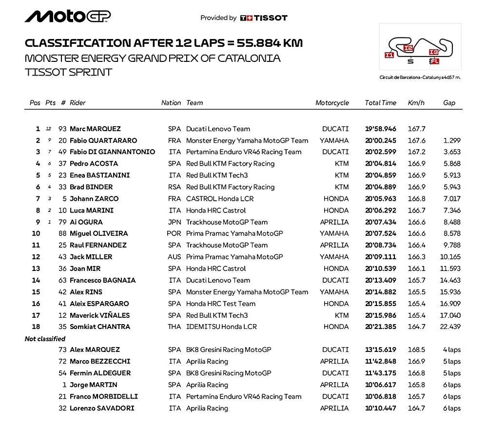 Hasil Sprint Race MotoGP Catalunya: