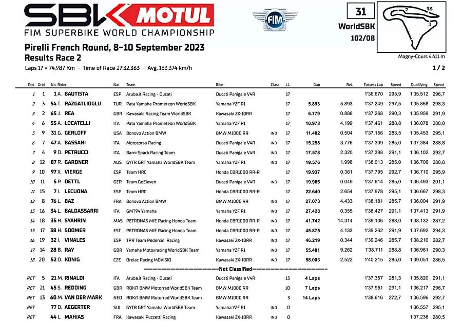 Hasil Race 2 WorldSBK Magny-Cours Prancis 2023: