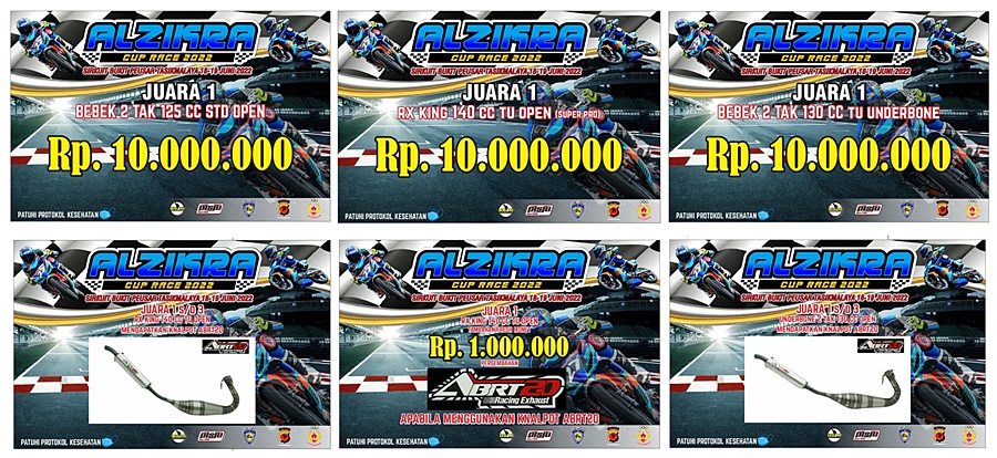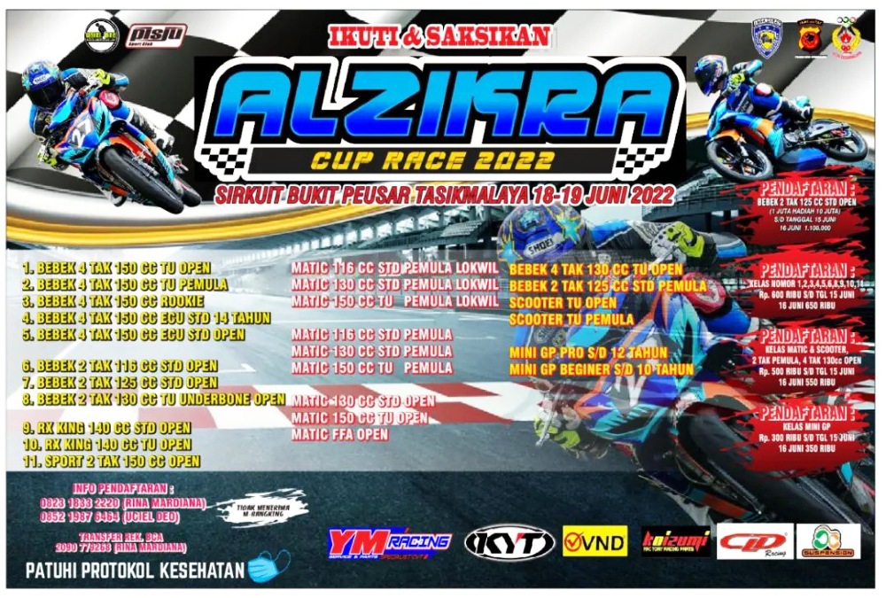 BalapMotor.Net – Event yang mantap! Yes, Alzikra Cup Race 2022 kembali hadir dengan sajian yang berbeda dari sebelumnya. Baik dari kelas yang dilombakan maupun hadiah yang siap diberikan.