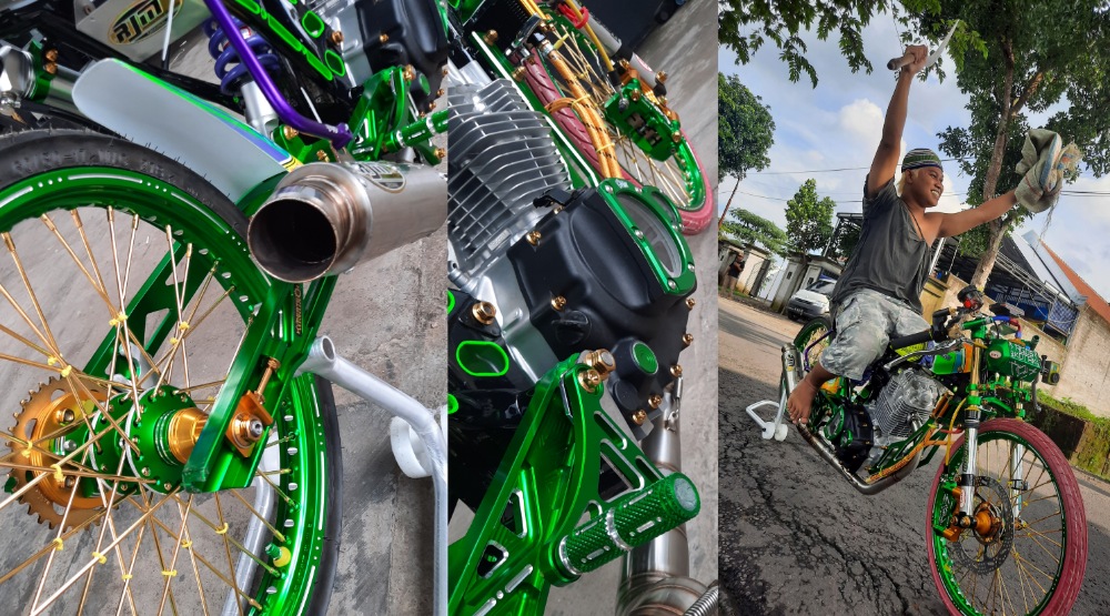 “Diluar mesin, habisnya kisaran 50 juta termasuk rangka, cat, asesoris sperpart dan pernak-perniknya,” tambah owner yang mempercayakan Agung Keke soal modifikasinya.