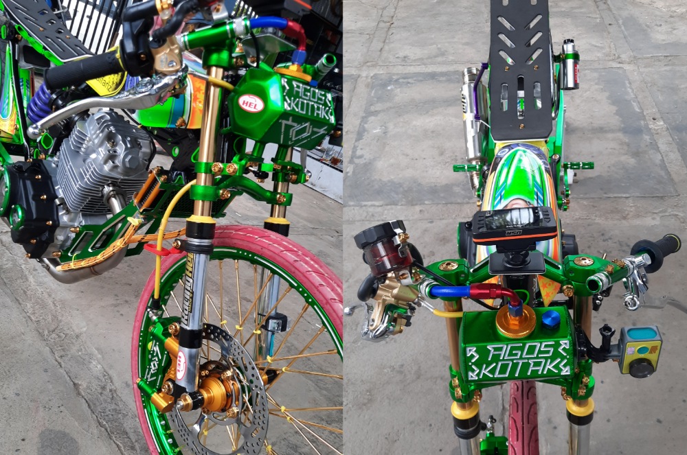 Siap tarung sesama FFA. “Kalau spek untuk main 500m, motor baru jadi dan masih proses untuk setting,” lanjut sang juragan yang mempercayakan knalpot kepada RJM Progressive Muffler dengan hitungan ex tangah in 33 dan out 53.