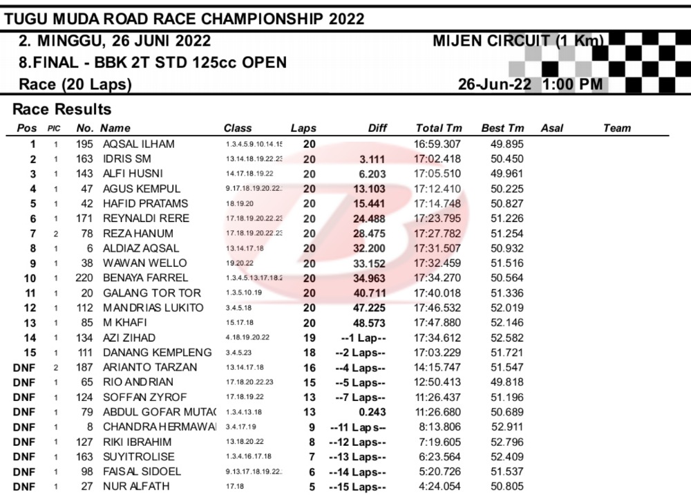 Aqsal dan rekan setimnya Idris SM langsung meninggalkan lawan-lawannya. Sepanjang 20 lap yang ditempuh, kedua pembalap yang memacu motor racikan Agus BKRT ini tak tersentuh.