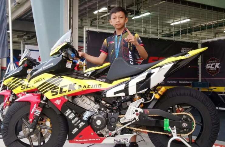 Sementara podium kedua menempatkan menempatkan pembalap Indonesia. Kali ini diwakili bocil MK. Ramadhipa. Ya, pembalap bersama yang tampil sebagai wildcard tim SCK Honda Racing itu tampil luar biasa.
