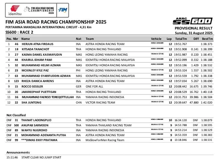 BalapMotor.Net – Herjun AF membalas mantap pertarungan Race 2 Supersport (SS600) ARRC putaran keempat di sirkuit Pertamina Mandalika, Lombok, NTB.