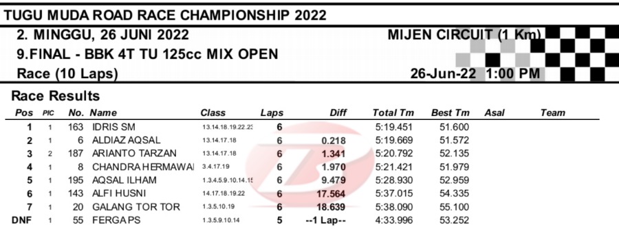 “Kita cukup puas 5TP konsisten di jalur juara. Walaupun pas hari Sabtu ada kendala mesin padahal sudah memimpin sangat jauh. Kalau motor lain memang tergolong baru. Seperti MX-King ini perdana tampil. Masih butuh waktu dan kedepannya semoga bisa lebih baik,” ujar manager tim.