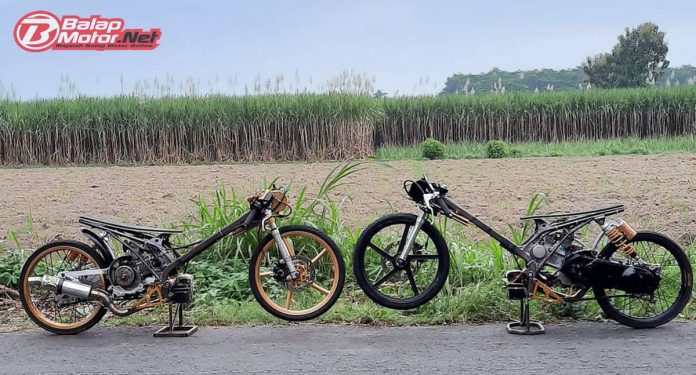 Model rangkanya menyerupai model rangka custom untuk Bebek 130