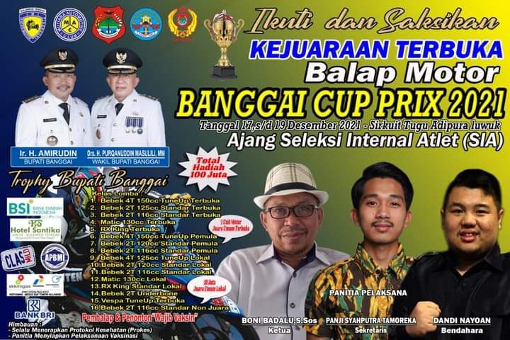 BalapMotor.Net – Kejuaraan balap motor Banggai Cup Prix 2021 siap digelar di Sirkuit non permanen Tugu Adipura Luwuk Banggai, Sulawesi Tengah akhir pekan ini (18-19 Desember). dengan julukan Kota Air, Luwuk Banggai menjadi sorotan karena akan menggelar event di akhir tahun 2021 ini.
