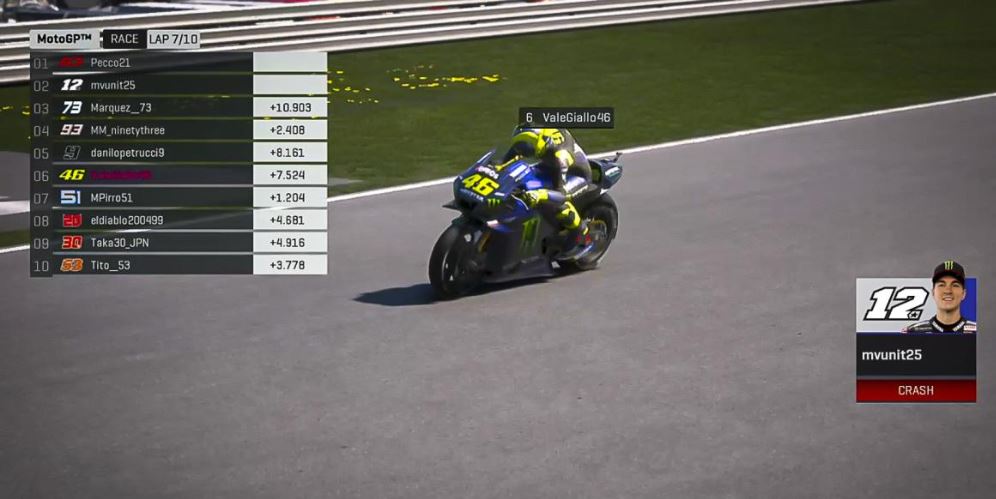 Dikutip dari laman resmi MotoGP, juara dunia sembilan kali ini mengaku menikmati balapan virtual MotoGP. Tetapi kepada GPOne.com, pembalap Monster Energy Yamaha ini bilang, ”Pengalaman aneh yang baru bagi saya. Saya lebih baik dengan mobil daripada (balapan) dengan motor di video game,” tutur Valentino Rossi.