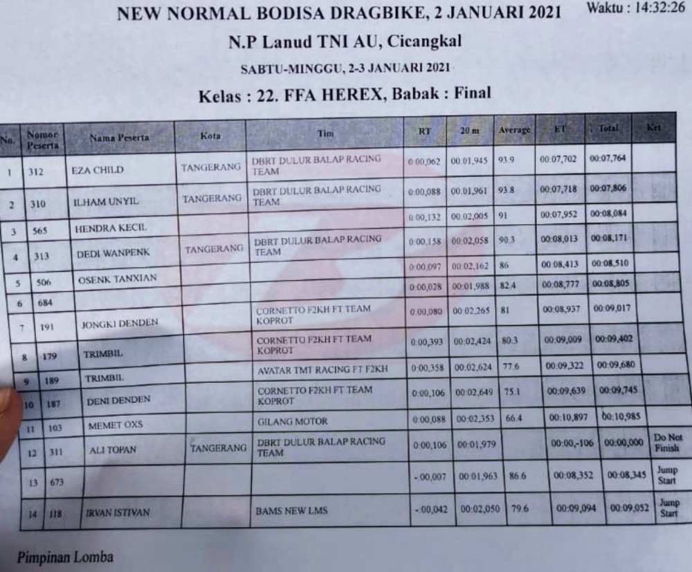 BalapMotor.Net – Verza berbasic injeksi sukses jadi raja Herex di kejuaraan balap lurus 201m bertajuk New Normal Bodisa Drag Bike 2021 yang berlangsung 2-3 Januari di Lanud TNI AU Cicangkal.