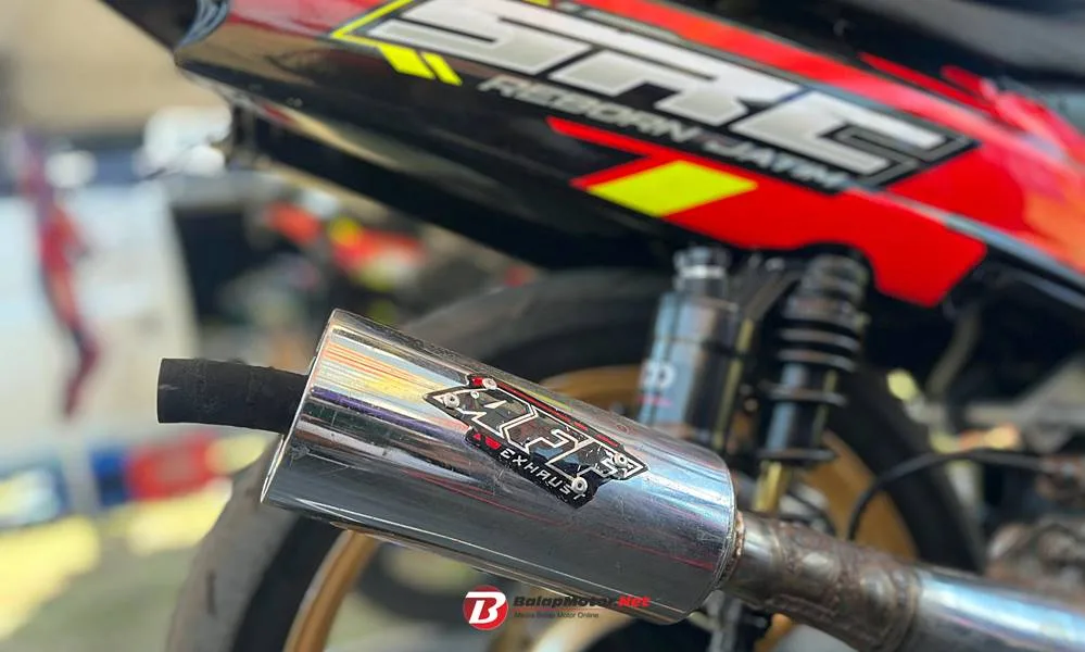 Namun bukan hanya soal mesin, tunner yang selalu tampil kalem itu membuktikan knalpot bikinnanya yaitu “AFF Exhaust”. Ini lubang buang khusus pacuan bebek goreng yang diproduksi langsung olehnya.