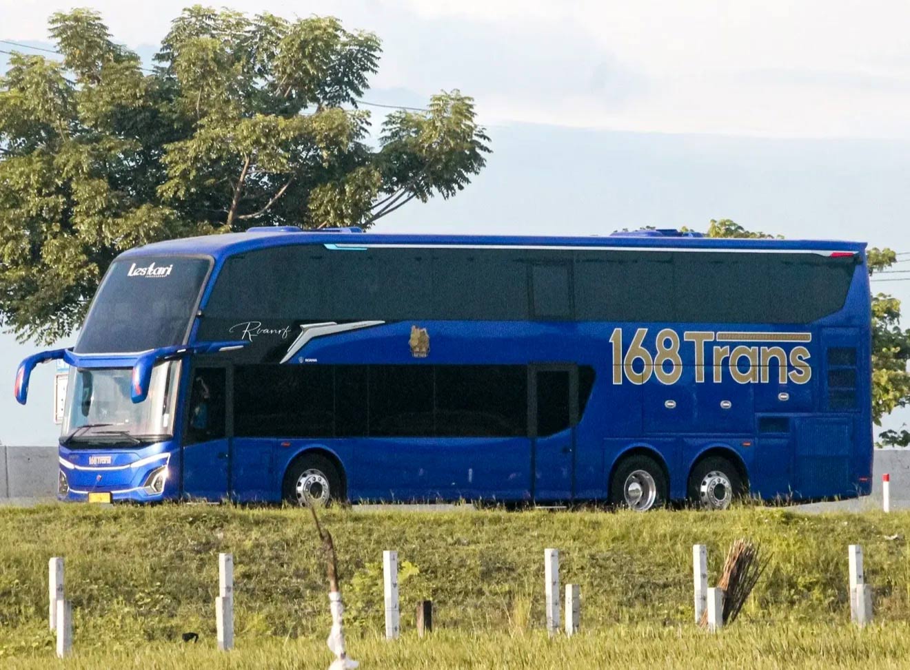Mengusung livery biru polos bergaya European Buses dengan sentuhan aksen gold minimalis khas 168 Trans, unit ini merupakan hasil kolaborasi antara Mevans Sanggramawijaya dan karoseri ternama Adiputro, Malang.
