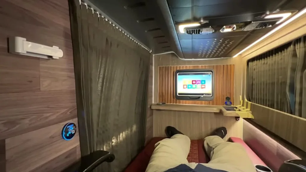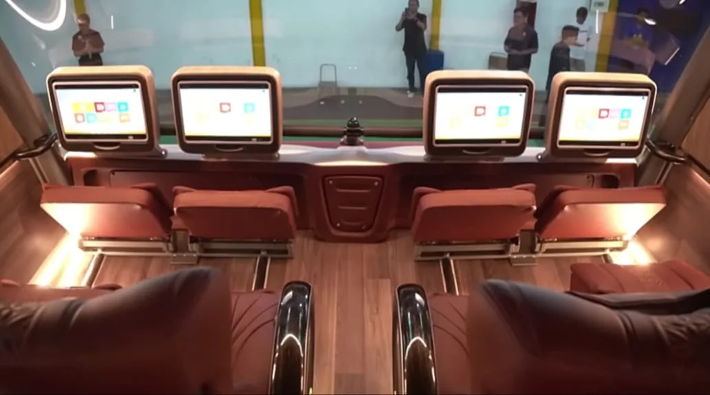 Sementara itu, dek bawah terbagi dua. Untuk penumpang yang mengutamakan privasi, tersedia Sleeper Class dengan fasilitas lengkap seperti WiFi, AVOD Buspad, speaker, lampu baca, wireless charger, USB charger, meja lipat, adjustable armrest, hingga ruang kepala yang lega.
