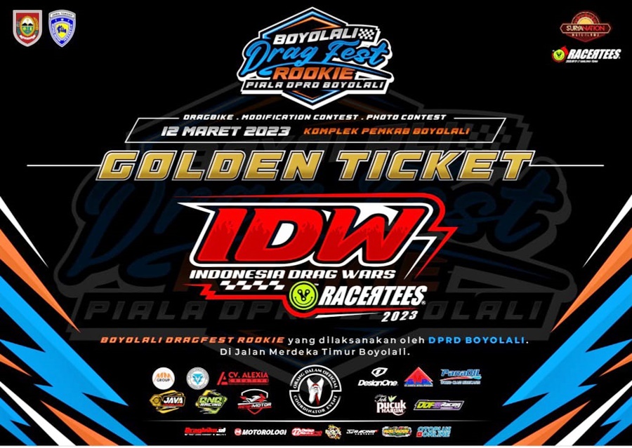 Tak hanya itu saja gaes, Boyolali Drag Fest ini juga akan merebutkan golden tiket untuk tampil pada kejuaraan Indonesia Drag Wars (IDW). Hadiah ini untuk peraih best time di kategori 2 tak dan 4 tak dan runner-up poin. So, siapkan dan daftarkan diri kalian. #gaspol (***)