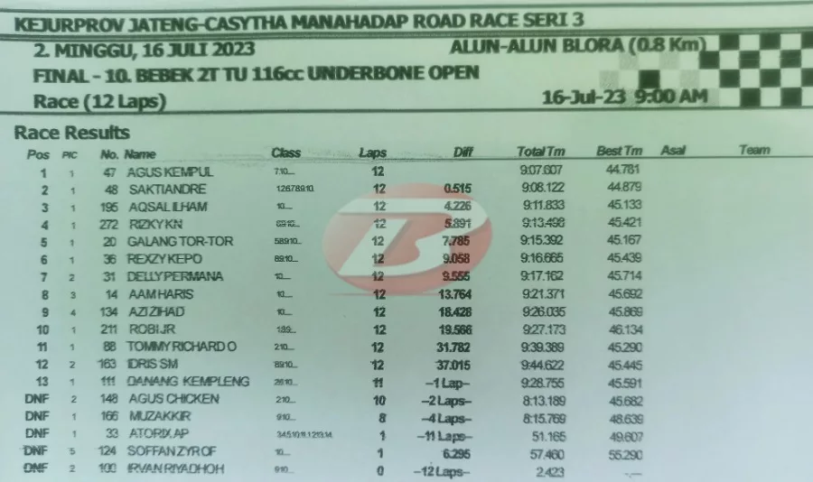 Yup, pacuan warna ungu dengan bendera HKRT RPM Management RRT SMK Isyamiyah itu sukses menjadi yang terbaik bersama Agus Kempul Setiawan.