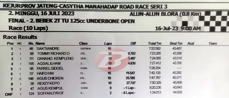 Hasil Race Underbone 2T 125cc: