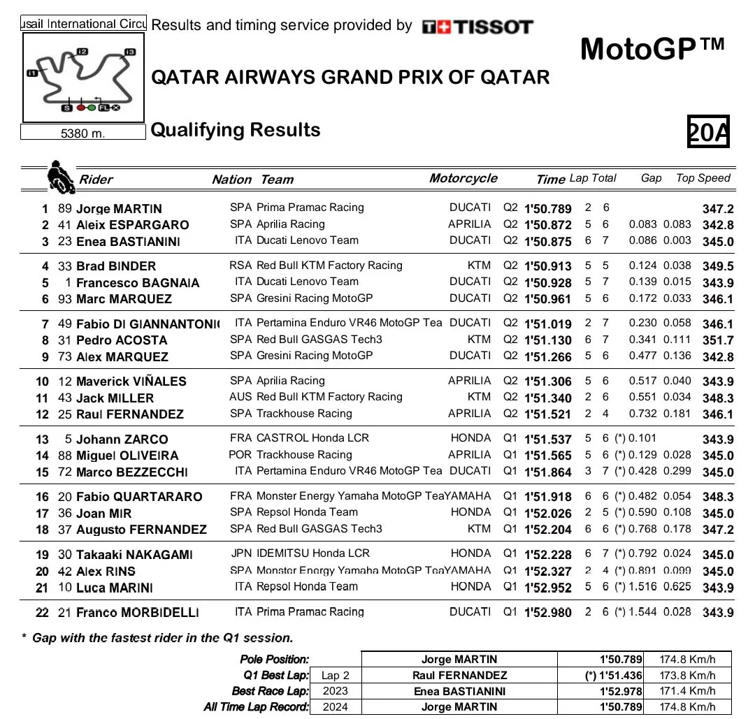 Hasil Kualifikasi MotoGP Qatar 2024: