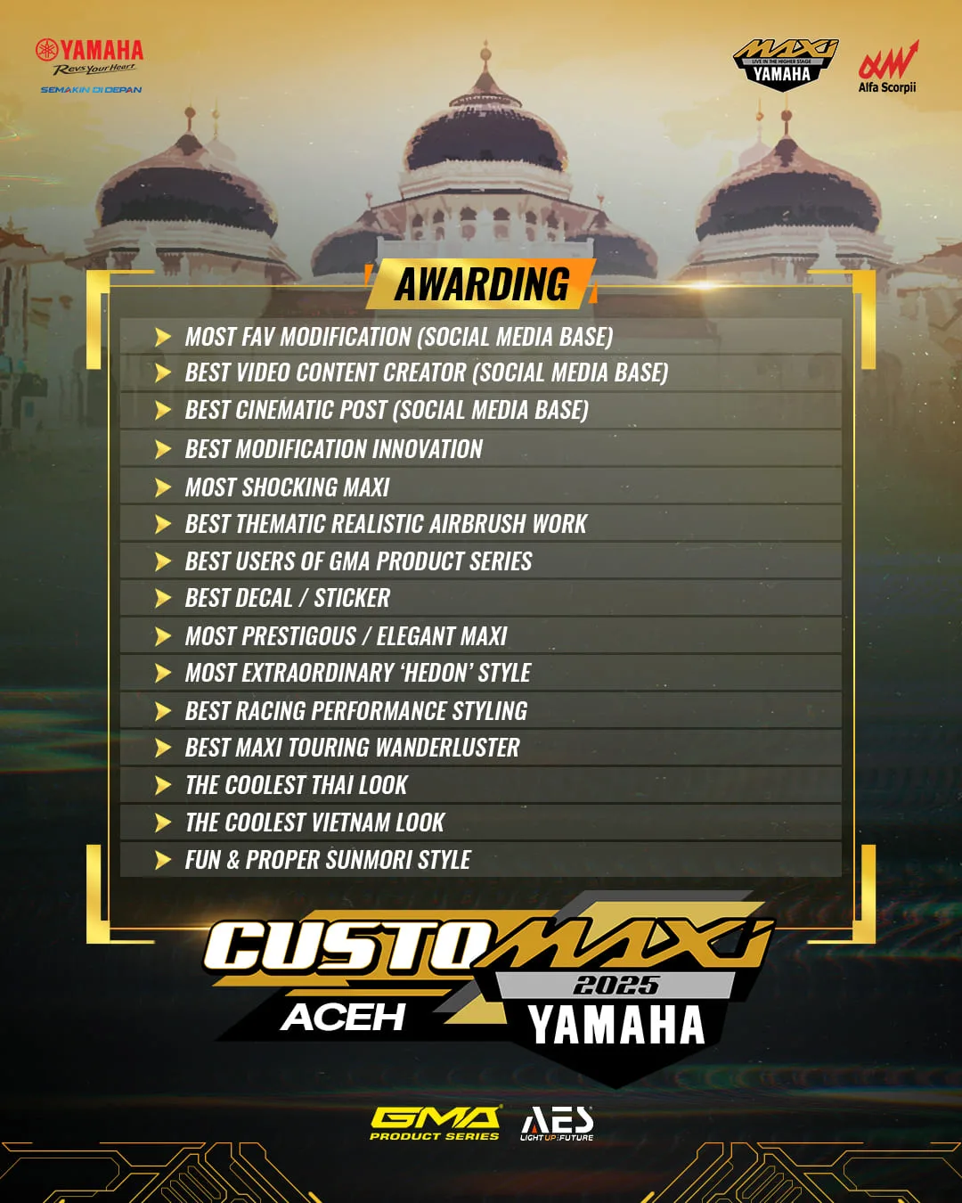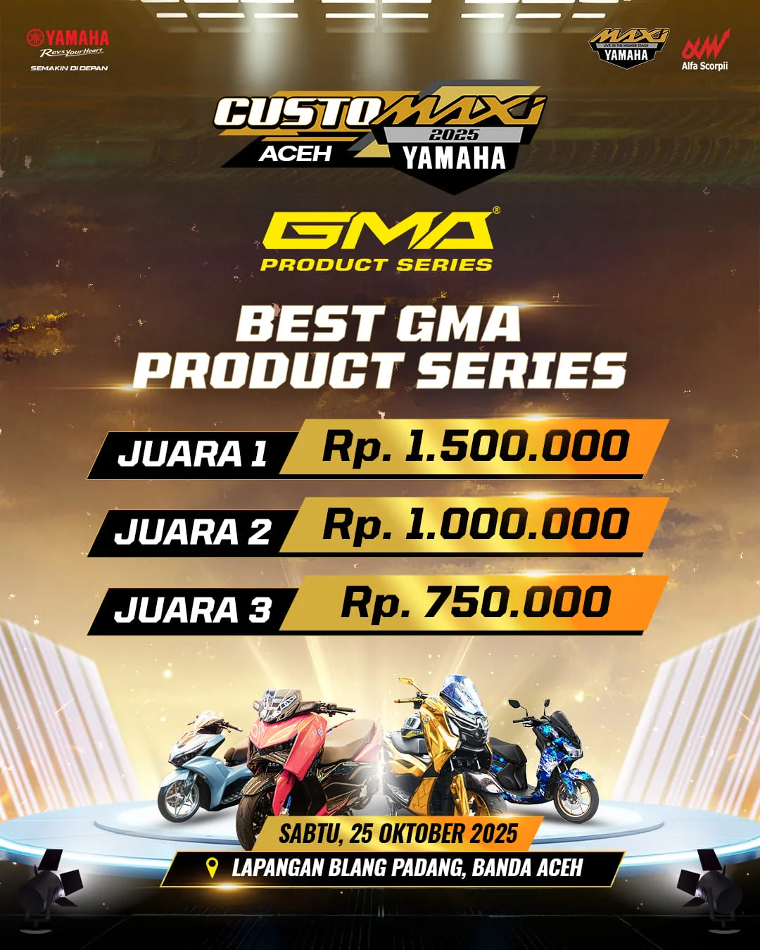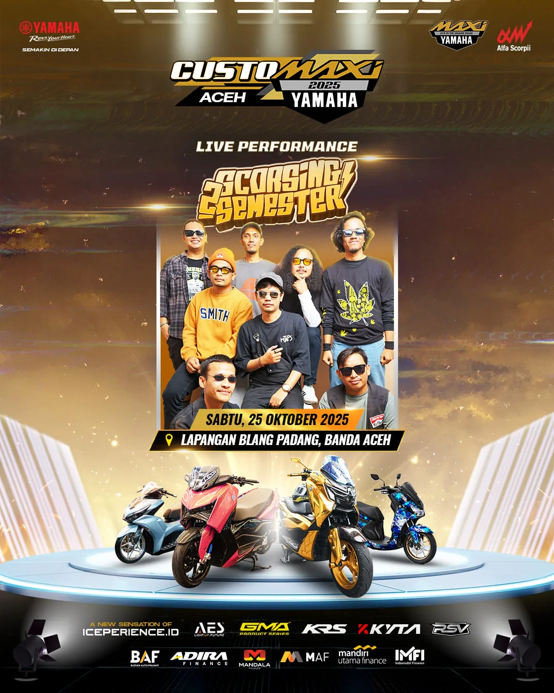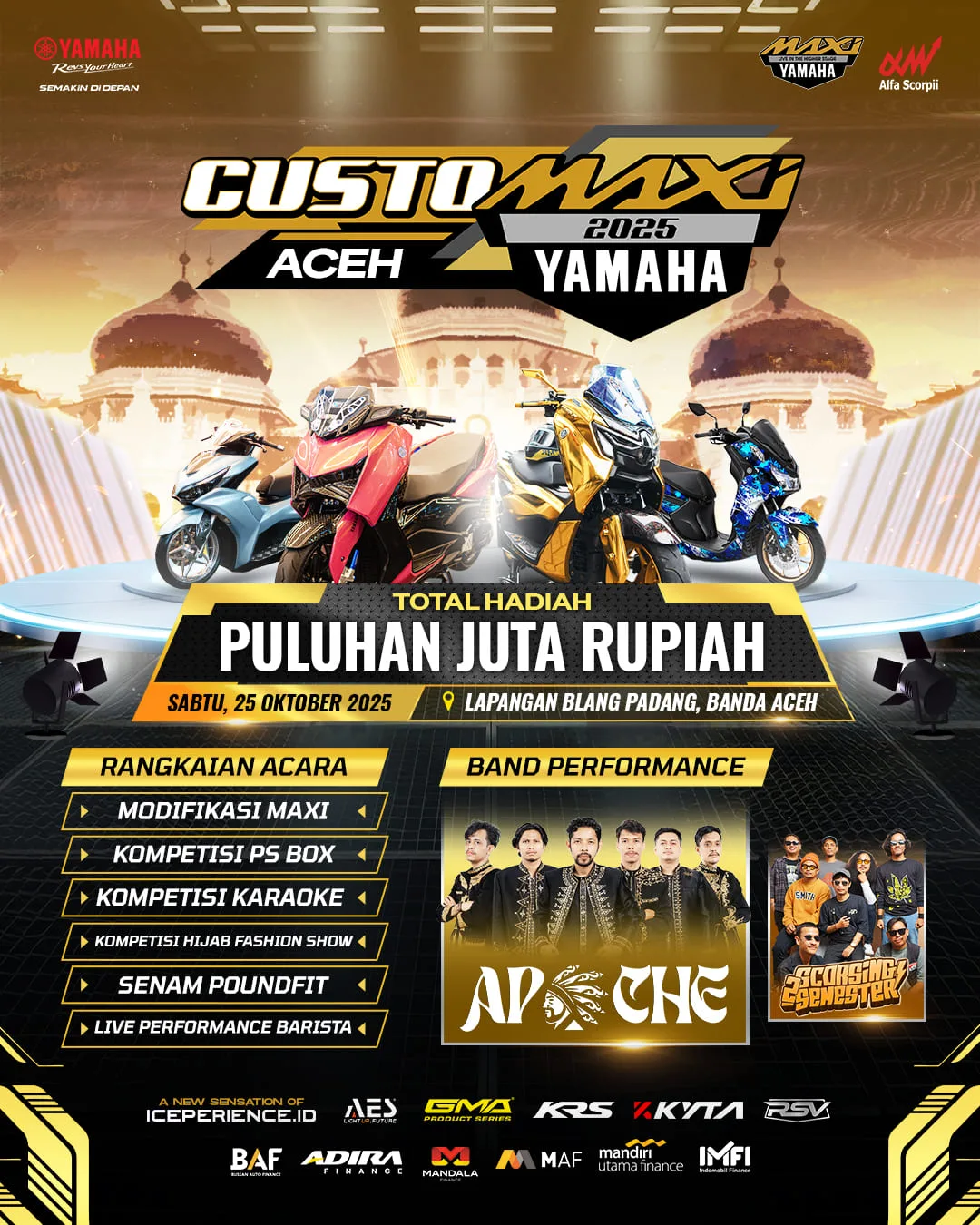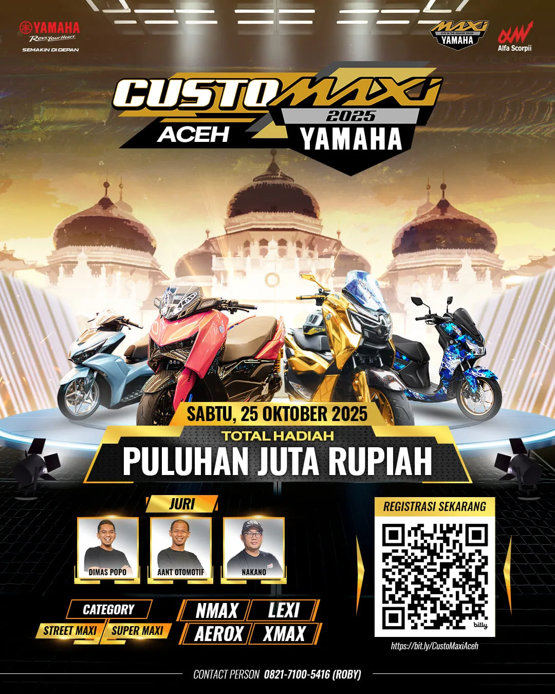 Jangan lewatkan kesempatan untuk menjadi bagian dari pesta modifikasi terbesar Yamaha MAXi di Aceh! Aksi dan Inovasi Terbaik Maxi Skutik ada di sini! (A2M)