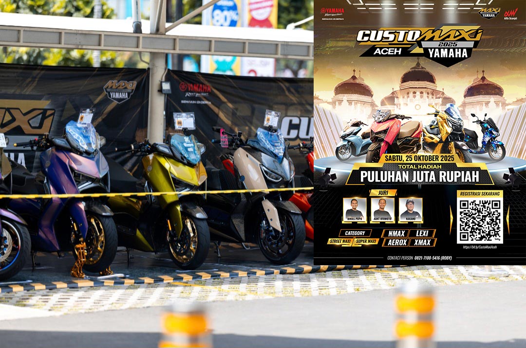 BalapMotor.Net – Para penggemar modifikasi skutik premium Yamaha, bersiaplah! Ajang Customaxi 2025 kembali menyapa kota Serambi Mekkah, Aceh, pada Sabtu, 25 Oktober 2025, bertempat di Lapangan Blang Padang, Banda Aceh. Event akbar ini siap memanjakan mata para pecinta otomotif dengan kreasi-kreasi modifikasi terbaik dan menawarkan total hadiah fantastis puluhan juta rupiah.