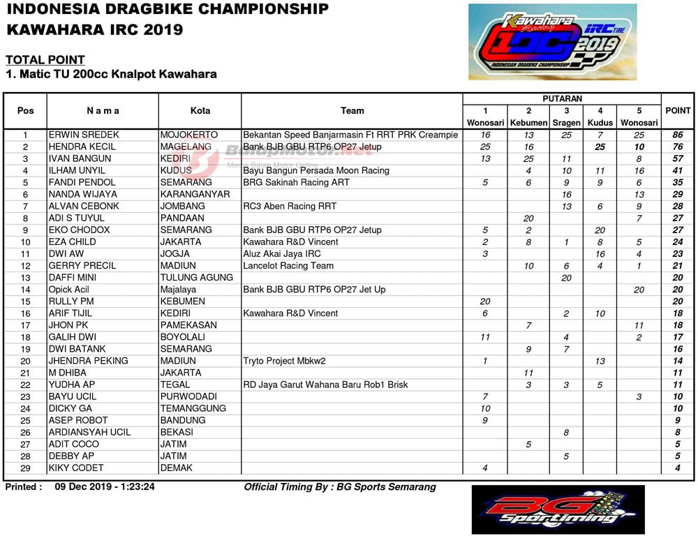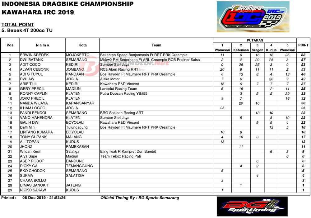 Daftar Juara Umum Semua Kategori Poin IDC 2019: Erwin Sredek Panen Gelar!