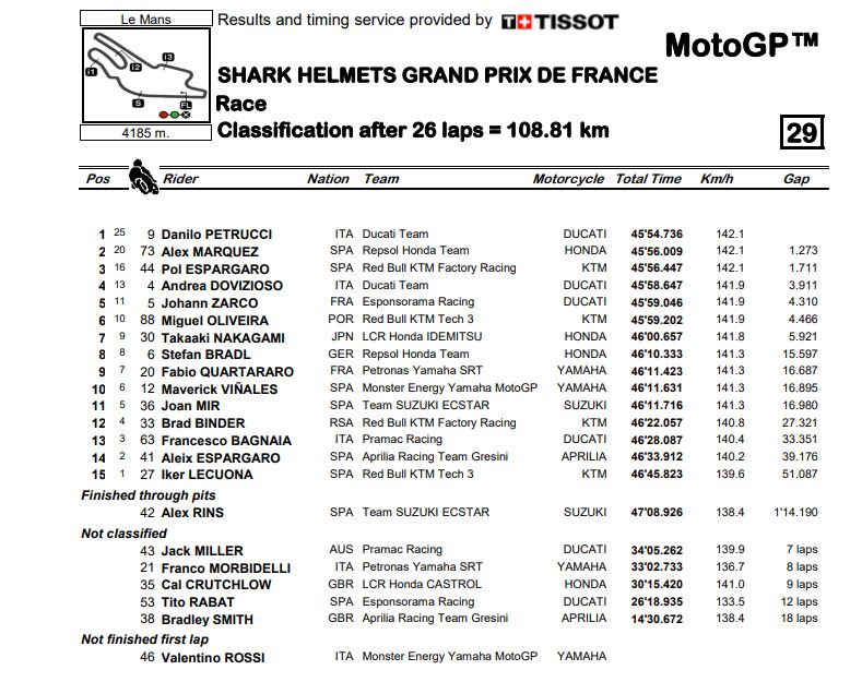Berikut hasil selengkapnya dari race MotoGP Perancis 2020.