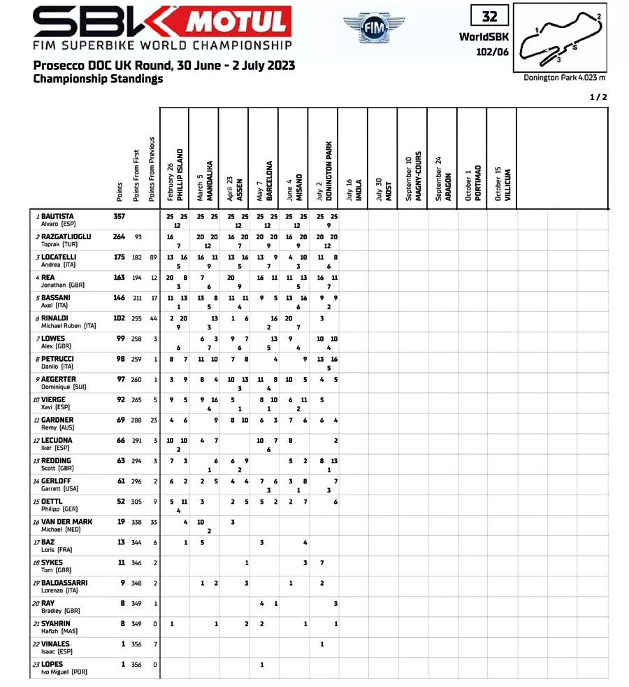 Rea sendiri meraih podium ketiga di Race 1 dan Superpole Race. Sementara pada Race 2 pembalap Irlandia Utara itu gagal mempertahankan posisi tiga besar yang membuatnya frustasi.