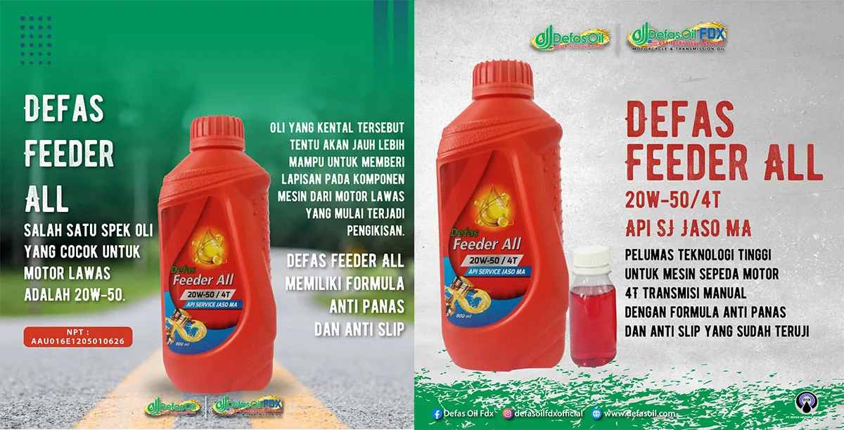 BalapMotor.Net – Produsen oli asli Indonesia yaitu PT.Defas Adipura Bersama belum lama ini merilis produk baru mereka yaitu Defas Feeder All. Menariknya, Defas Feeder All sendiri cocok banget buat motor lawas gaes.