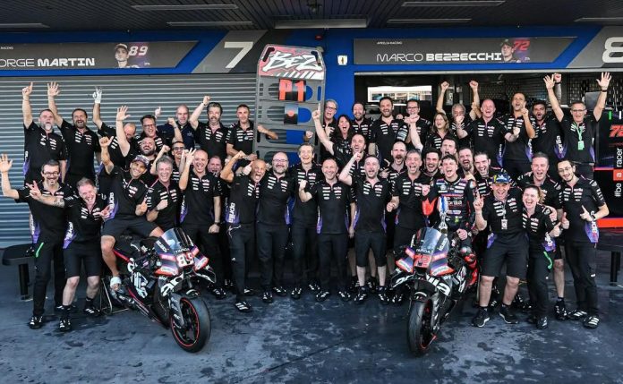 BalapMotor.Net – Aprilia tersenyum lebar setelah selesai Grand Prix Thailand. Pada partai pembuka Kejuaraan Dunia MotoGP ini mereka sukses meraih podium juara.