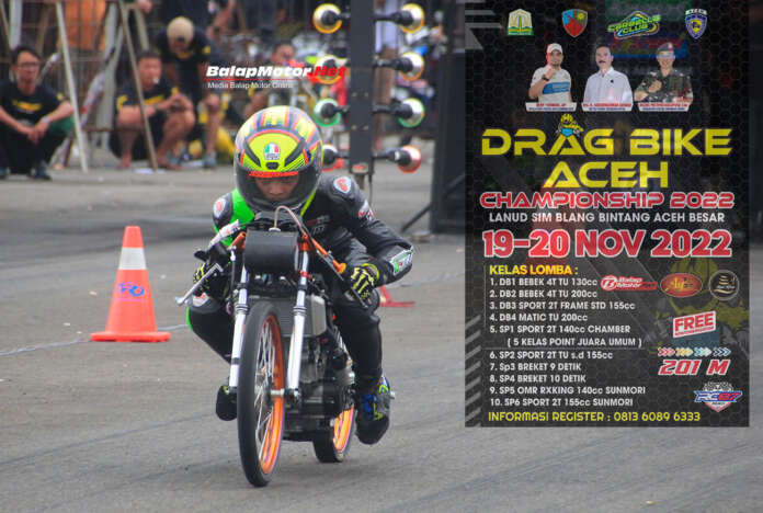 BalapMotor.Net – Kejuaraan balap lurus Drag Bike 201m di wilayah Aceh akan tersaji lagi. Kali ini dengan Drag bike Aceh Championship 2022 yang akan digelar di Lanud SIM Blang Bintang, Aceh Besar pada 19-20 November 2022.
