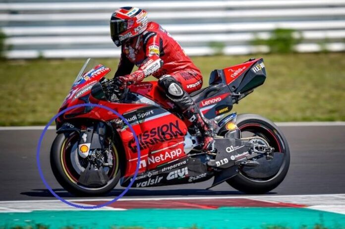 Namun, untuk cover sok depan yang dijajal test rider Ducati Michele Pirro, belum dipastikan apa fungsingnya. Mungkin saja untuk menambah pendinginan di radiator sisi bawah agar semakin maksimal.