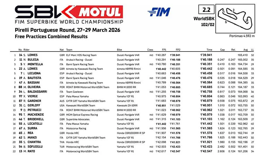BalapMotor.Net – Ducati sukses mendominasi hari pertama latihan bebas kejuaraan dunia superbike yang berlangsung di Autodromo Internacional do Algarve, Portimao, Portugal pada Jumat 27 Maret 2026.