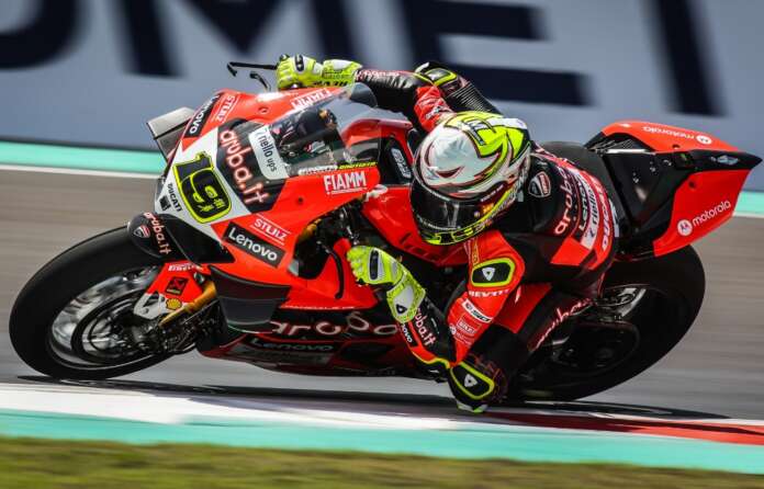 Pabrikan merah asal Italia ini konsisten meraih waktu tercepat dalam latihan bebas yang digelar hari Jumat ini. Di WorldSBK, pimpinan klasemen Alvaro Bautista tak terbendung.