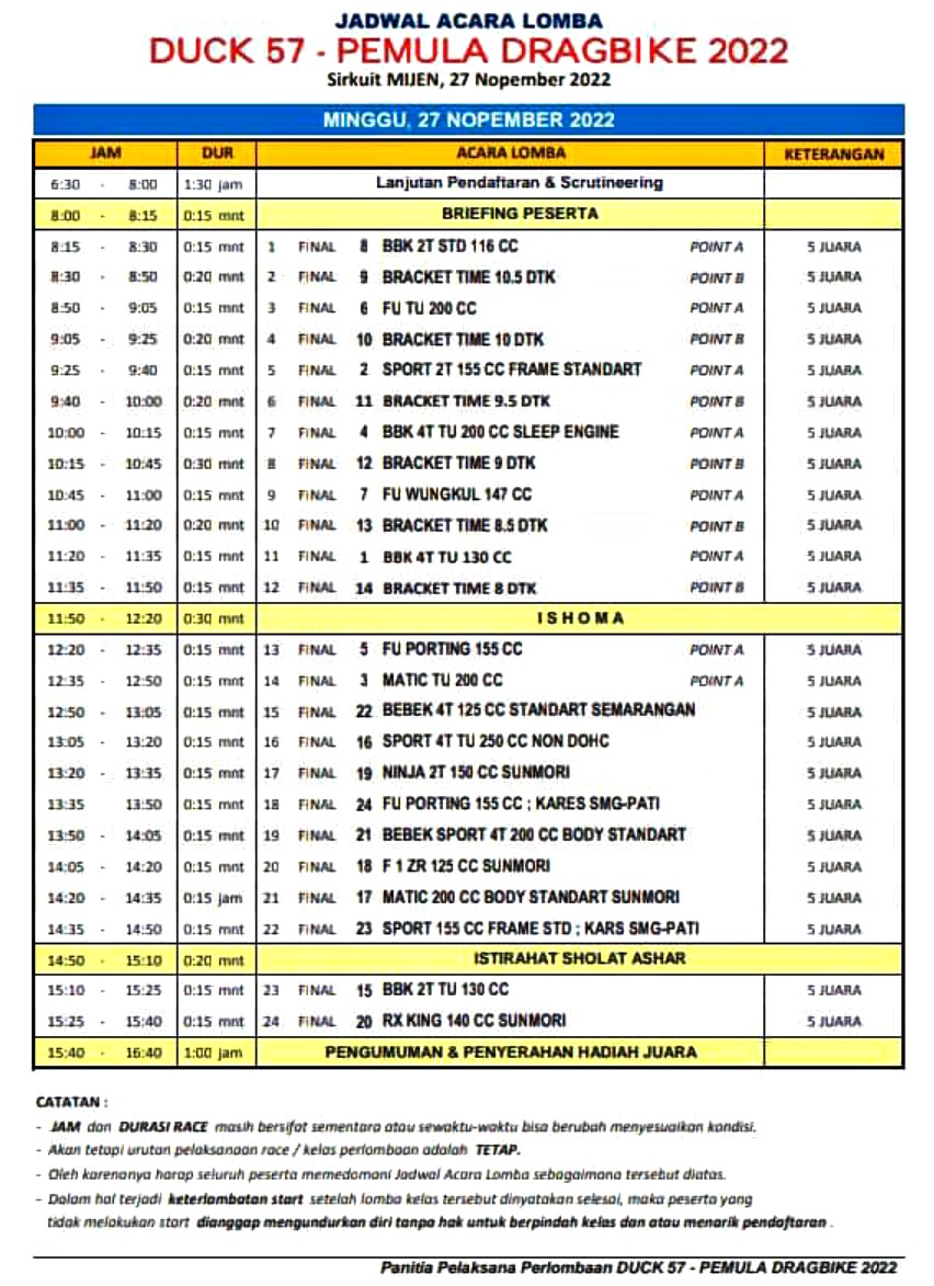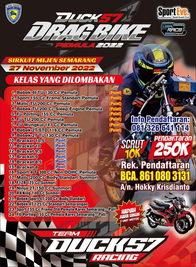 Ingat! Balapannya di sirkuit Mijen, Semarang Minggu ini (27 November). Daftarnya murah tapi hadiahnya melimpah! Total ada 24 kelas yang akan dipertandingkan.