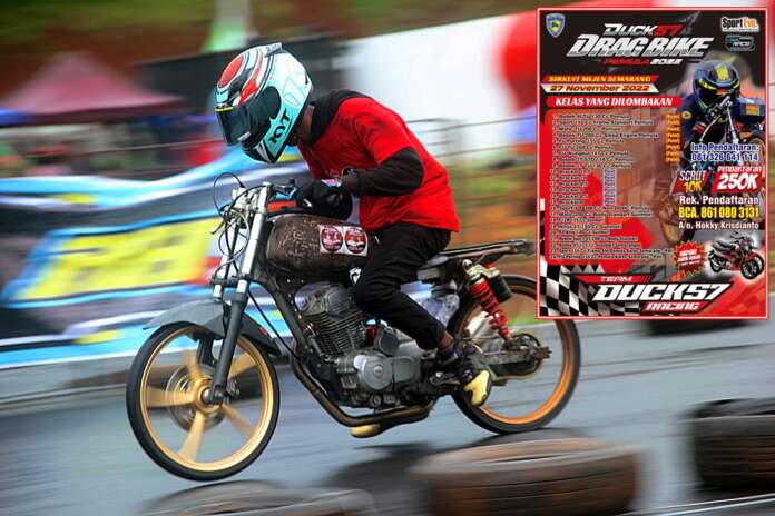 BalapMotor.Net – Mantap nih! Hadiah dua unit sepeda motor langsung disiapkan bagi dua kategori juara umum dalam event Duck 57 Drag Bike Pemula 2022.