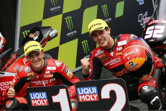 BalapMotor.Net – Duet pembalap tim Indonesia Racing Gresini Moto3 yaitu Gabriel Rodrigo (2) dan Jeremy Alcoba (52) mampu menguasai sesi kualifikasi gelaran Gran Premi Monster Energy De Catalunya yang berlangsung di sirkuit Catalunya, Barcelona, Spanyol (5/6).