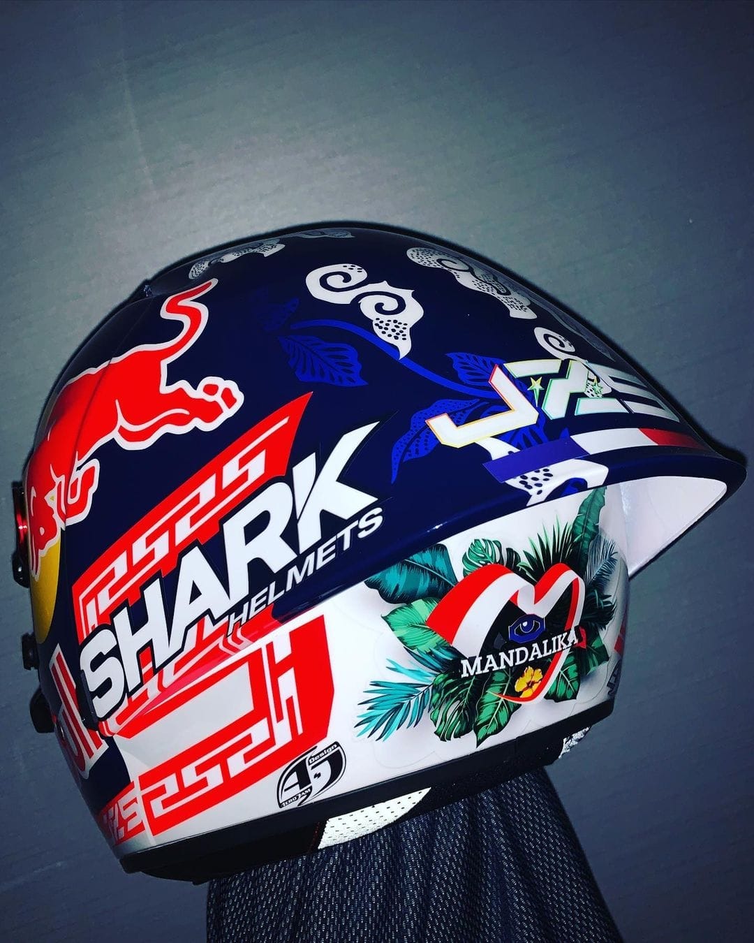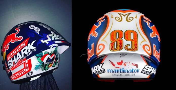 Kedua pembalap yang berasal dari Italia dan Prancis ini menggunakan helm dengan motif spesial dengan mengambil tema Indonesia. Johhan Zarco misalnya, pada helm Shark yang akan dipakainya pada balapan akhir pekan ini menambahkan motif batik khas Lombok.