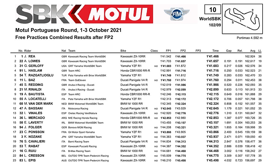 Berikut Hasil Kombinasi FP1-FP2 WSBK Portimao 2021: