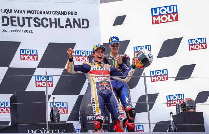 BalapMotor.Net – Marc Marquez masih menjadi perbincangan hangat setelah balapan MotoGP putaran ke-8 yang berlangsung di sirkuit Sachsenring, Jerman (20 Juni). Banyak unggahan yang menyebut sang Raja sudah kembali.