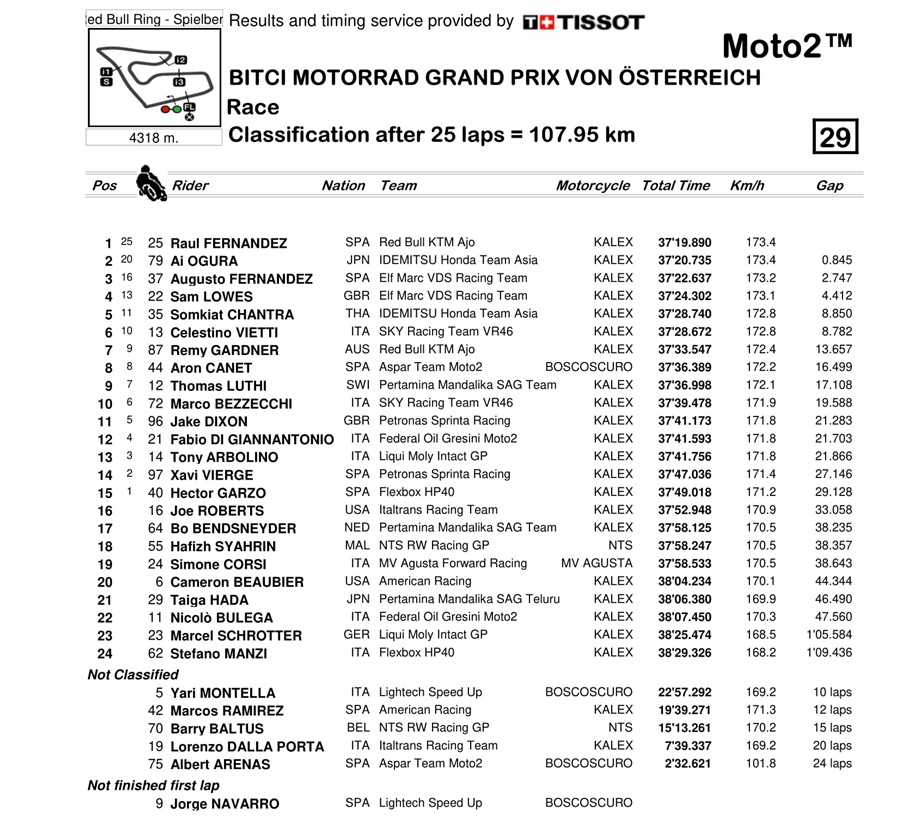 Chantra sukses finis kelima di GP Austria. Tak hanya itu saja, tapi dia juga meraih fastest lap dalam balapan. Penampilannya juga membuat tontonan yang seru saat Chantra terlibat duel sengit dengan pembalap asal Italia, Calestino Vietti.