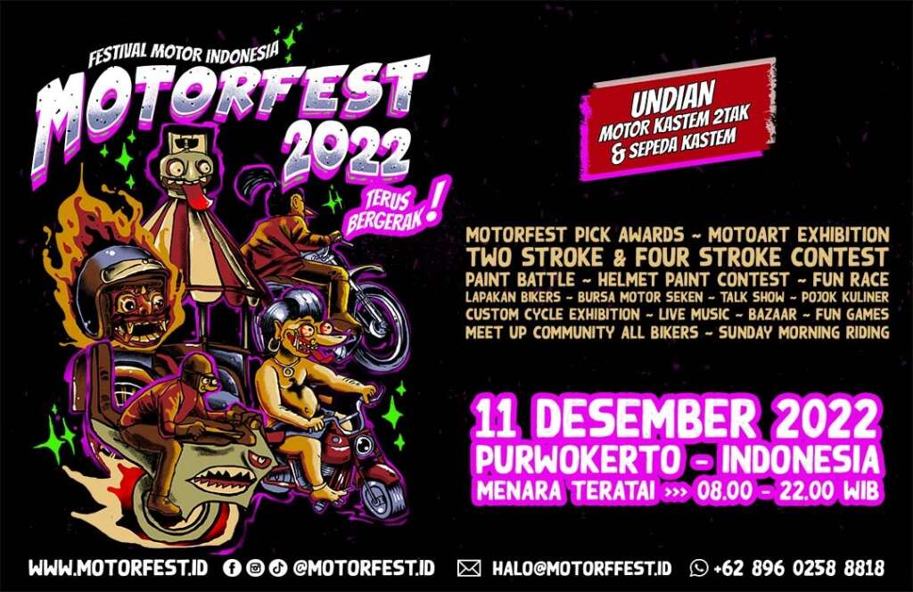 Untuk informasi lebih lanjut seputar Motorfest, baik informasi pendaftaran kontes, pembelian merchandise dan lain sebagainya bisa langsung kunjungi https://www.motorfest.id/ website resmi Motorfest.