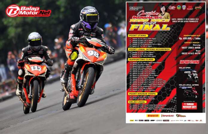 BalapMotor.Net – Babak pamungkas kejuaraan Casytha Manahadap Road Race Championship 2022 yang akan berlangsung di sirkuit NP. GOR Satria Purwokerto 17-18 Desember besok dipastikan semakin seru.