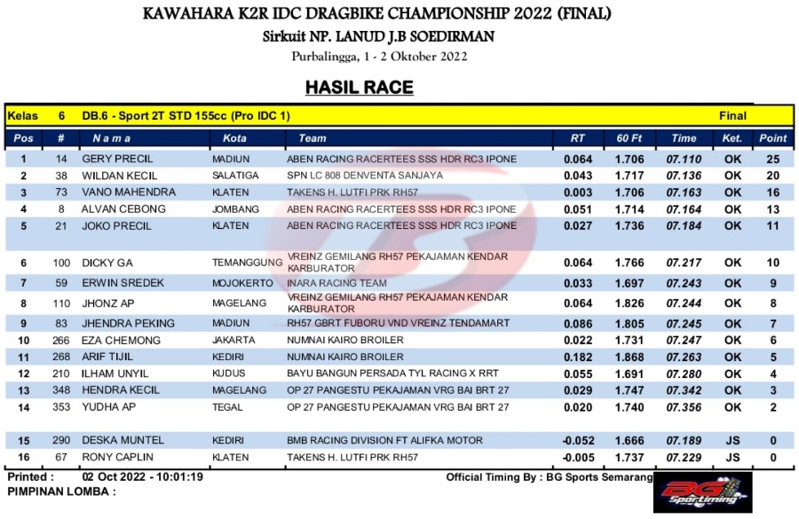 Selain itu, Alvan Cebonk, Joko Precil juga sukses nangkring di podium. Di IDC Pro 2 Arif Ucil serta Andri Setiawan juga sukses menempati posisi kedua dan keempat. Tentu saja sebuah raihan luar biasa dari pacuan karya Yudha ‘Kemo’ Sanjaya itu.