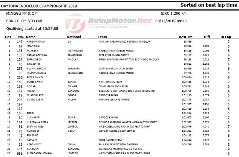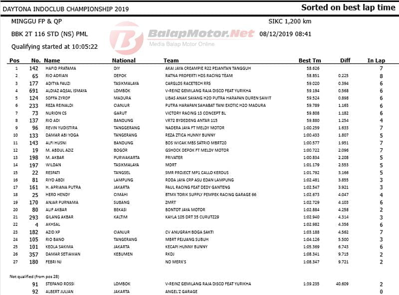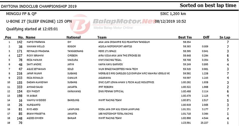 Masih dengan spek Yamaha F1ZR Akai Jaya Creampie R22 Pejantan Tangguh, Hafid mampu kejutkan pembalap senior lainnya. Dari 19 starter di kelas Underbone Sleep Engine ini, Hafid tercepat dengan catatan waktu 58,354 detik.