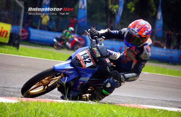 Hafid yang masih kategori pemula ini sukses jadi yang tercepat di 3 kelas sekaligus. Dua kelas bebek goreng yaitu bebek 2T STD 116cc dan bebek 2T STD 125cc khusus pemula.