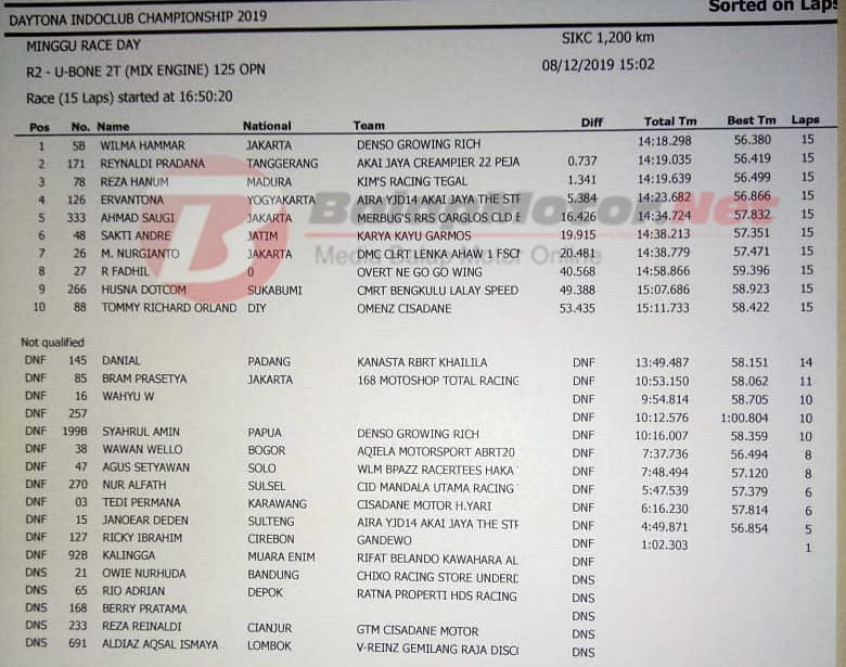 BalapMotor.Net – Willy Hamer kembali jadi yang terbaik dalam pertarungan kelas Underbone 125cc. Setelah Race 1, Race 2 pun disikat lagi oleh Willy dalam