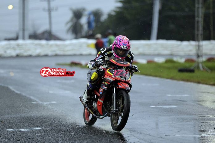 Rider andalan No Limit Racing Team tersebut menunjukkan kecepatan yang begitu stabil dan performa motor yang sangat kompetitif. Walaupun trek basah total, namun bukan kendala berarti bagi Aditya Fauzi.