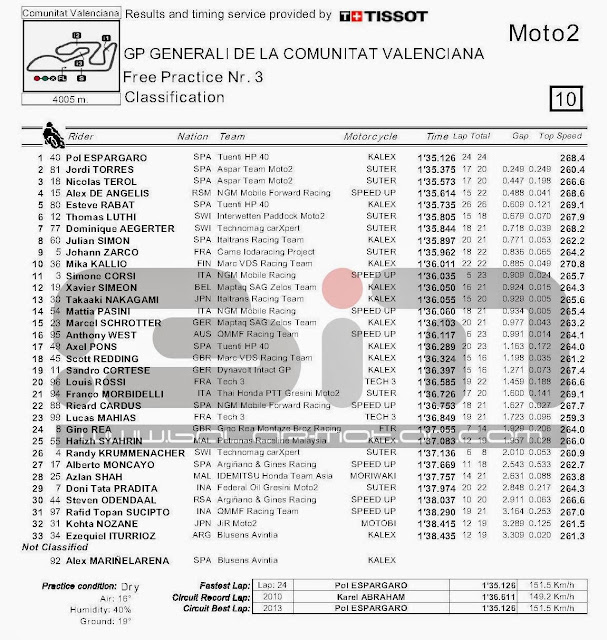 Balap-Motor.com Seperti di FP1 dan FP2 keganasan Pol Espargaro rupanya berlanjut di FP3, nah kalau begini sih balap-motor.com mau kasih prediksi kalau yang bakalan menang besok ya si Pol Espargaro yang jago gas poll tentunya hehe. Di sesi ini dia hanya di bayangi oleh Nico Terol dan Jordi Tores yang juga anak Spanyol.