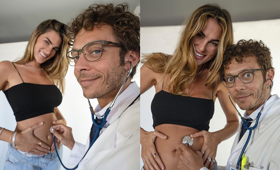 Sekarang semuanya berjalan jauh lebih cepat dari yang diharapkan. Rossi dan pacarnya Francesca Sofia Novello memposting gambar di media sosial di mana ‘Il Dottore’ menguping baby bump orang yang dicintainya.