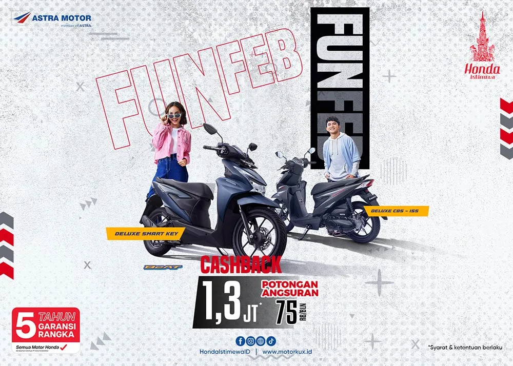 BalapMotor.Net – Fun Februari atau ‘FUNFEB’ hadir dengan promo menarik bagi peminat sepeda motor Honda yang berada di wilayah Yogyakarta, Kedu dan Banyumas.